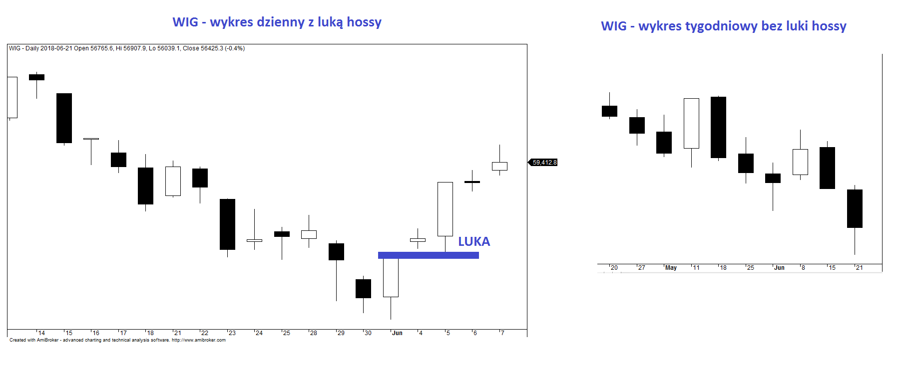 Co to jest tygodniowa luka hossy? Jak nazwa wskazuje jest to wolna przestrzeń punktowa widoczna na wykresie tygodniowym (świecowym czy słupkowym) pomiędzy ceną minimalną bieżącego tygodnia a ceną maksymalną poprzedniego. Mówiąc o luce zawsze należy wskazywać, jakiego interwału ta luka dotyczy, gdyż może się tak zdarzyć, że na wykresie dziennym zachodzi luka pomiędzy poniedziałkiem a piątkiem, jednakże na wykresie tygodniowym takowego okna nie widać.
