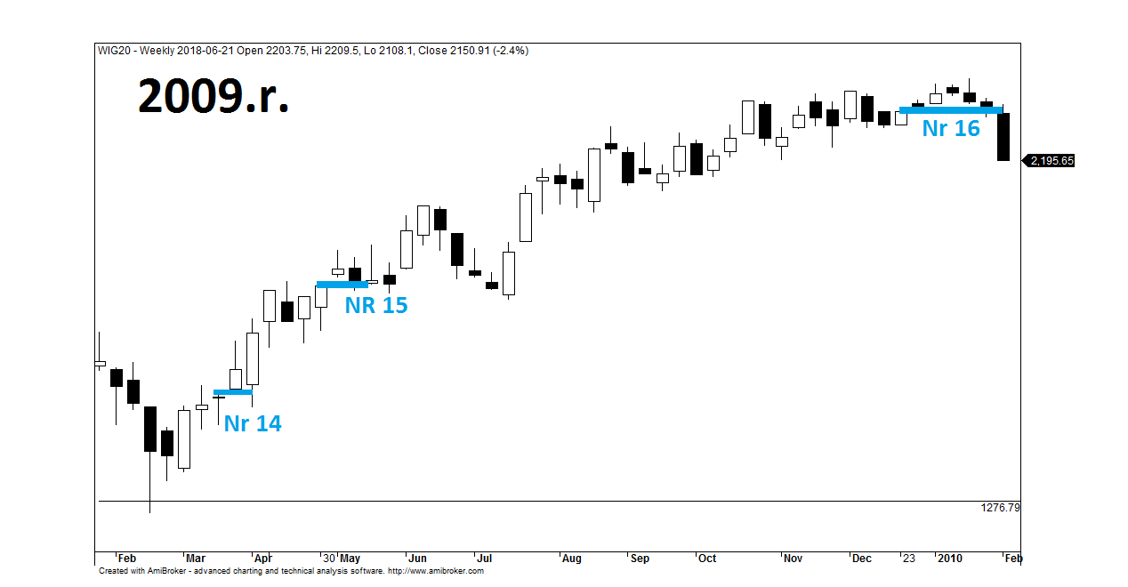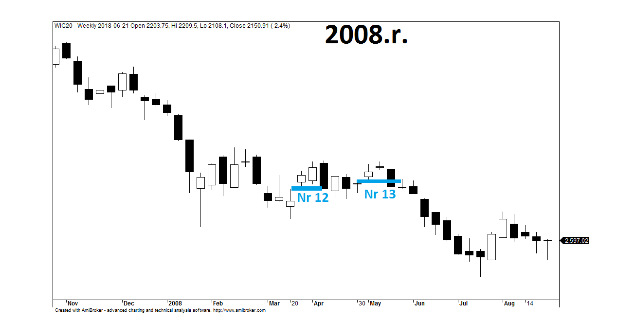 Można zadać sobie pytanie, czy był to jedynie przypadek, iż na kolejną hossę inwestorzy musieli czekać do momentu, w którym tygodniowa luka hossy zostaje wypełniona? Pojawia się także myśl, czy gdyby już w 2003.r. WIG20 zamiast podążać na północ wykonał krok w tył domykając lukę, to w kolejnych latach rynek nie spadłby tak nisko? I czy powyżej opisane zachowanie się WIG20 w 2009.r. można powiązać z Teorią Magnetyczności Luk, która do wykształcenia się potrzebowała kilkanaście lat?